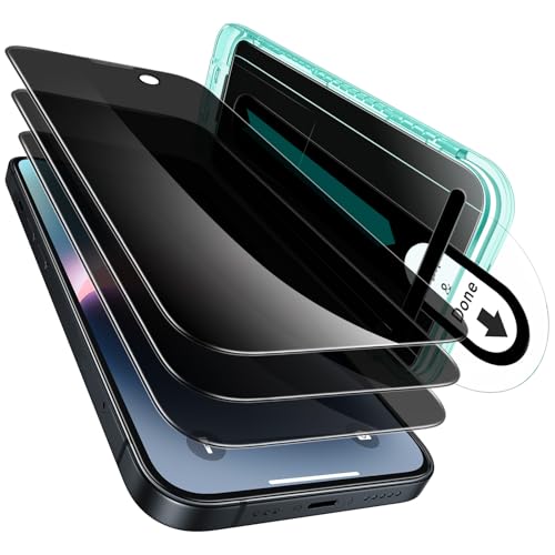 ESR 3 Pack 9H+ Glass for iPhone 16 Plus/iPhone 15 Plus Privacy Screen Protector, [Military Grade Shatterproof & Longest Durable] Anti-spy Tempered Glass with Updated Easy Installation Tool