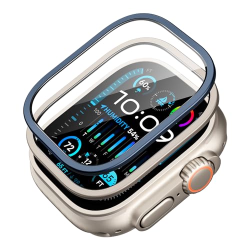 ESR 2 Pack Armorite Screen Protector for Apple Watch Ultra 3/2/1 (2025/2024/2023/2022,49 mm), Military Grade Protection, Tempered Glass Film with Aluminum Alloy Frame, Anti-Scratch, Titanium&Blue