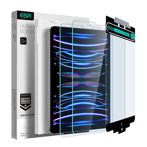 ESR 2 Pack Armorite Screen Protector for iPad Air (5th/4th Gen) and iPad Pro 11 (2022/2021/2020/2018), Tempered-Glass Film with Easy Application Tray, Military-Grade Protection