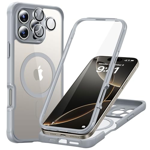 ESR for iPhone 16 Pro Case, Compatible with MagSafe, Full-Body Military-Grade Drop Proof Case for iPhone 16 Pro with Built-in 9H+ Tempered Glass Screen Protector, Clear Grey