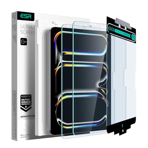 ESR 2 Pack Armorite Screen Protector for iPad Pro 11 Inch M4 2024, Tempered-Glass Film with Easy Application Tray, Military-Grade Protection, Scratch Resistant, HD Clarity