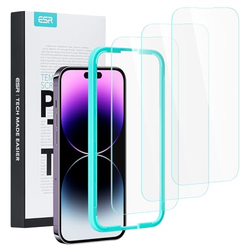 ESR Tempered-Glass Screen Protector Compatible with iPhone 14 Pro Screen Protector, with Easy Installation Frame, Military-Grade Protection, Ultra Tough, Scratch Resistant, 3 Pack