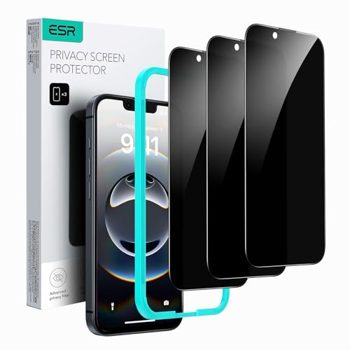 ESR 3 Pack for iPhone 16e/ iPhone 14/ iPhone 13/ iPhone 13 Pro Privacy Screen Protector, Anti-spy Tempered-Glass Privacy Screen Protector, Micro-curved Edges, Case Friendly