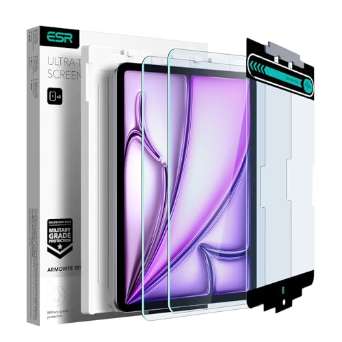 ESR 2 Pack Armorite Screen Protector for iPad Air 13 Inch M3/M2 (2025/2024), 9H Hardness Tempered Glass Film with UltraFit Tray, Military Grade Protection, HD Clarity, Dust and Bubble Free