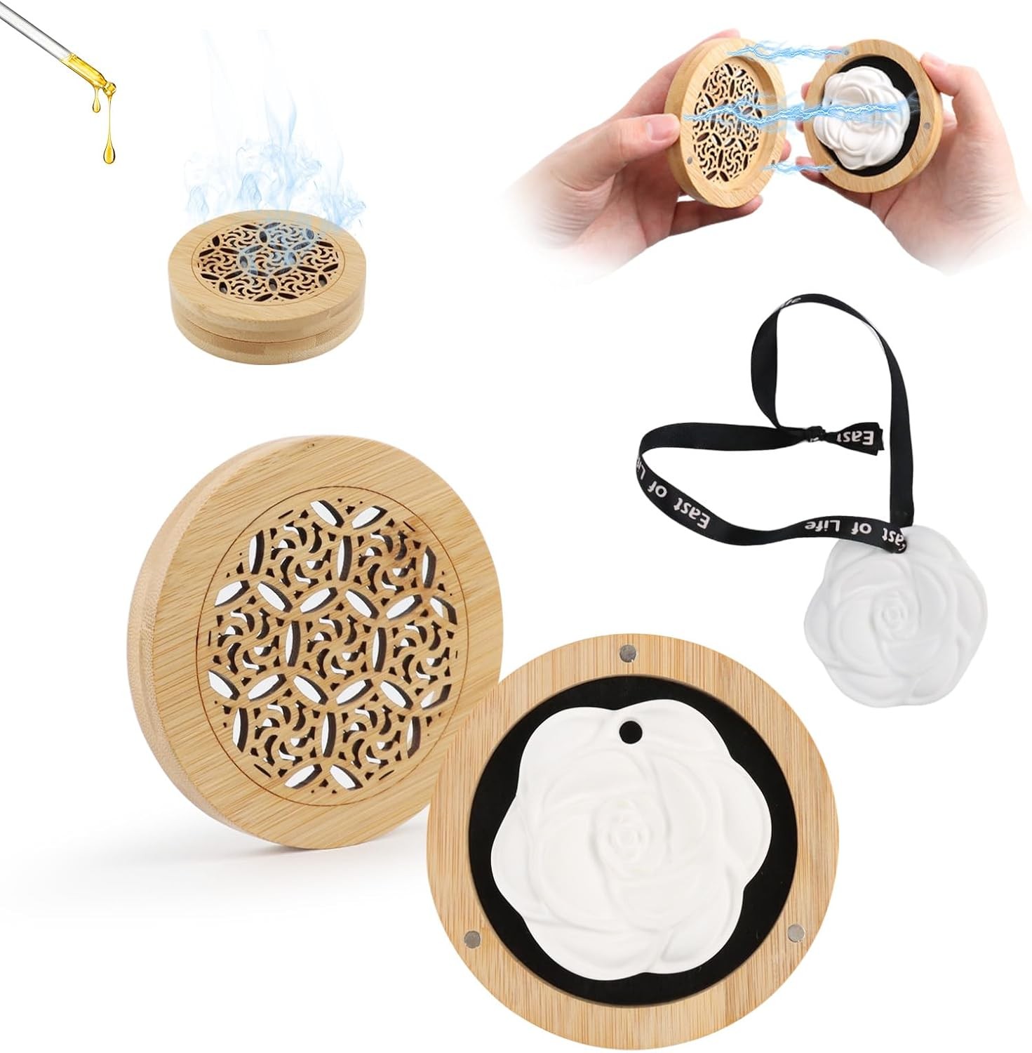 Essential Oils Diffuser, Essential Oils Fragrance Stone-Wooden Incense Box, Air