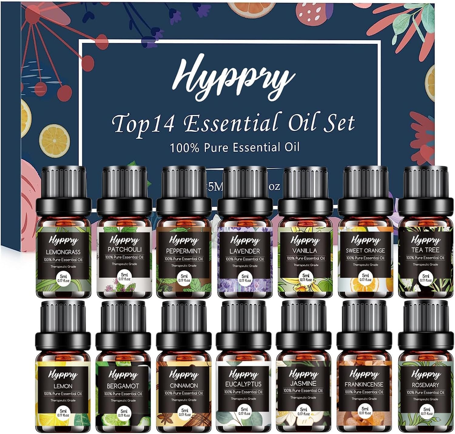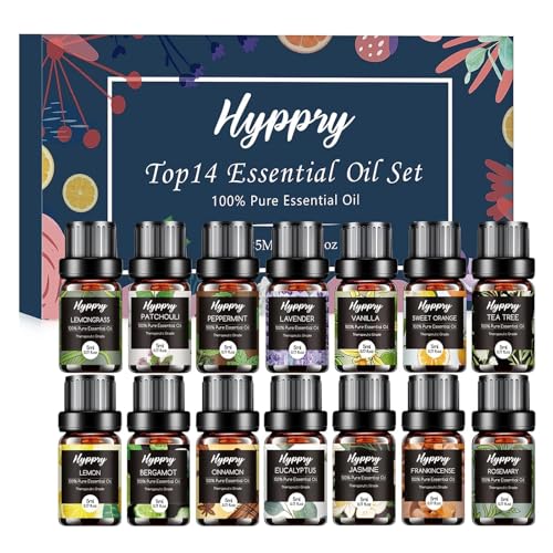 Hyppry Essential Oils Set 14 x 5ml, Pure Natural Essential Oils for Diffuser fo