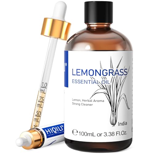 HIQILI Lemongrass Essential Oils for Diffuser 100ml | Natural Mosquito Repelled, Relieve Stress, Air Fresh, Skin Care, Candle Making Scent | Travel Bottle Included