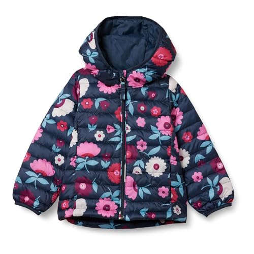 Amazon Essentials Girls' Lightweight Water-Resistant Packable Hooded Puffer Jacket, Navy Floral, 3 Years