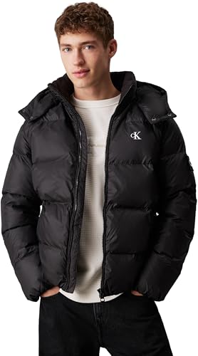 Calvin Klein Men’s Essentials Puffer Jacket with Hood, Black (Ck Black), XL