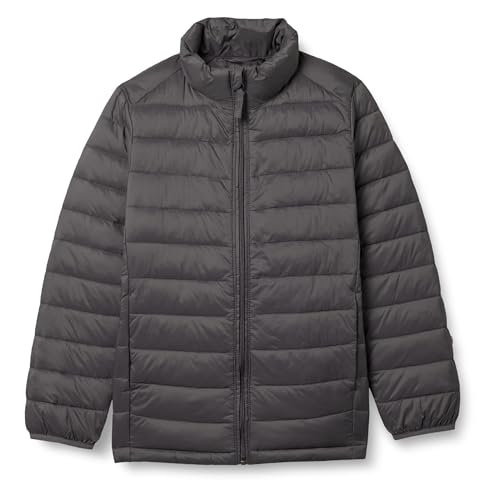 Amazon Essentials Boys' Lightweight Water-Resistant Packable Puffer Jacket, Dark Grey, 9 Years