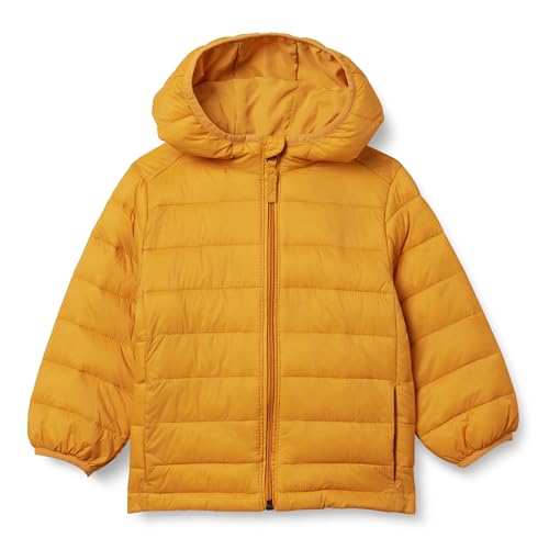 Amazon Essentials Boys' Lightweight Water-Resistant Packable Hooded Puffer Jacket, Golden Yellow, X-Large