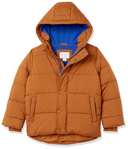 Amazon Essentials Boys' Heavyweight Hooded Puffer Jacket, light brown, 4 Years