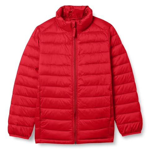 Amazon Essentials Boys' Lightweight Water-Resistant Packable Puffer Jacket, Red, 8 Years