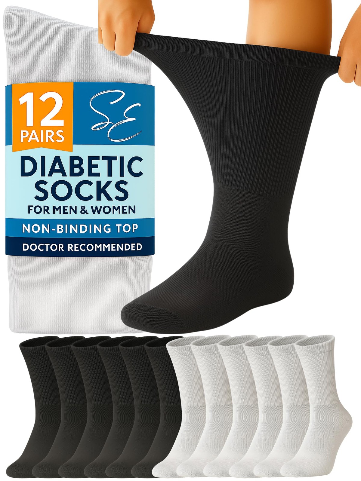 Special Essentials Diabetic Socks for Men & Women – 12 Pairs of Non-Binding