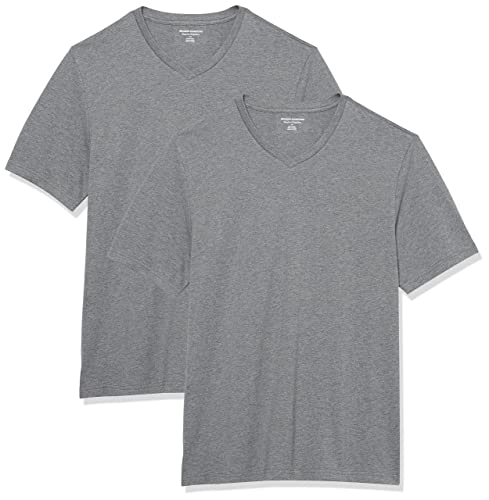 Amazon Essentials Men's T-Shirt Regular-Fit Short-Sleeve V-Neck (Available in Big & Tall), Pack of 2, Grey Heather, XX-Large Big