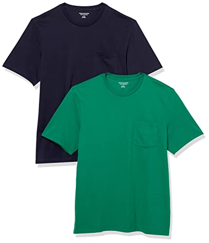 Amazon Essentials Men's T-Shirt Regular-Fit Short-Sleeve Crewneck Pocket, Pack of 2, Green/Navy, M