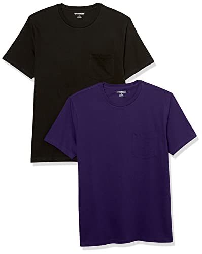 Amazon Essentials Men's T-Shirt Slim-Fit Short-Sleeved Crewneck Pocket, Pack of 2, Black/Dark Purple, XL