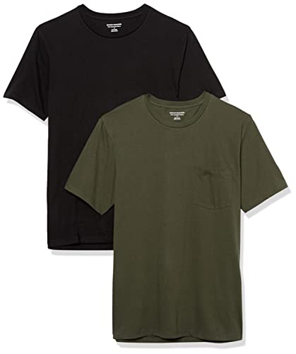 Amazon Essentials Men's T-Shirt Slim-Fit Short-Sleeved Crewneck Pocket, Pack of 2, Black/Olive, M