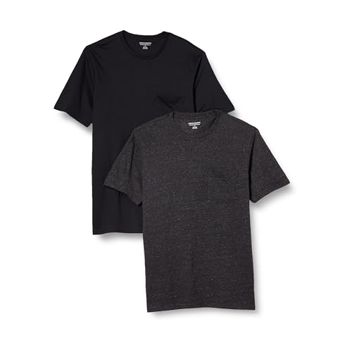 Amazon Essentials Men's T-Shirt Slim-Fit Short-Sleeved Crewneck Pocket, Pack of 2, Black/Charcoal Heather, XXL