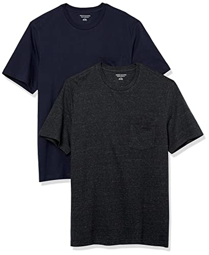 Amazon Essentials Men's T-Shirt Regular-Fit Short-Sleeve Crewneck Pocket, Pack of 2, Charcoal Heather/Navy, XXL