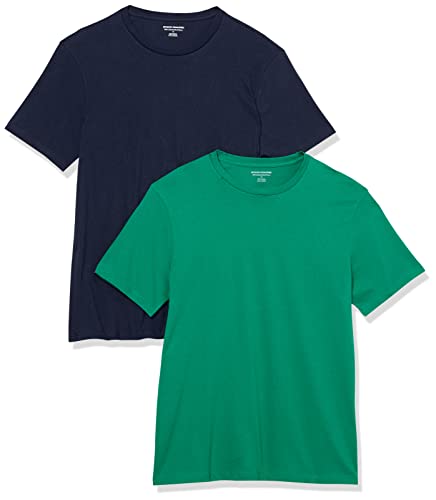 Amazon Essentials Men's T-Shirt Slim-Fit Short-Sleeve Crewneck, Pack of 2, Green/Navy, XXL
