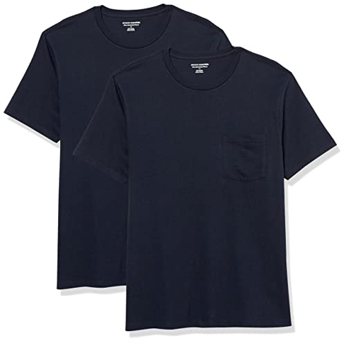Amazon Essentials Men's T-Shirt Slim-Fit Short-Sleeved Crewneck Pocket, Pack of 2, Dark Blue/Navy, M