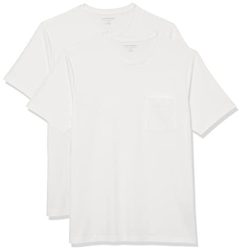 Amazon Essentials Men's T-Shirt Slim-Fit Short-Sleeved Crewneck Pocket, Pack of 2, White, M
