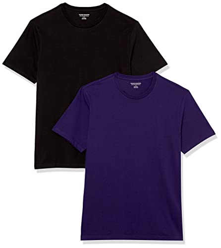 Amazon Essentials Men's T-Shirt Slim-Fit Short-Sleeve Crewneck, Pack of 2, Black/Dark Purple, L