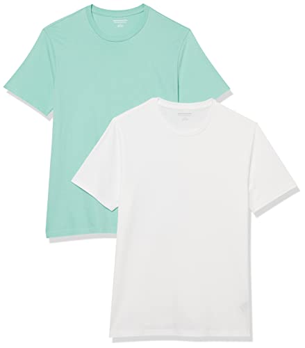 Amazon Essentials Men's T-Shirt Slim-Fit Short-Sleeve Crewneck, Pack of 2, Aqua Blue/White, XL