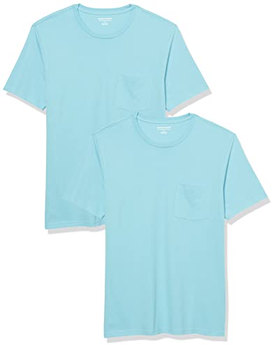 Amazon Essentials Men's T-Shirt Regular-Fit Short-Sleeve Crewneck Pocket, Pack of 2, Aqua Blue/Light Blue, L