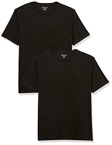 Amazon Essentials Men's T-Shirt Slim-Fit Short-Sleeved Crewneck Pocket, Pack of 2, Black, M