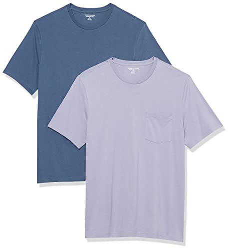 Amazon Essentials Men's T-Shirt Regular-Fit Short-Sleeve Crewneck Pocket, Pack of 2, Lavender/Washed Blue, M