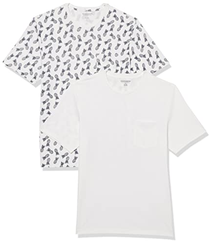 Amazon Essentials Men's T-Shirt Slim-Fit Short-Sleeved Crewneck Pocket, Pack of 2, White/Pineapple Print, XS
