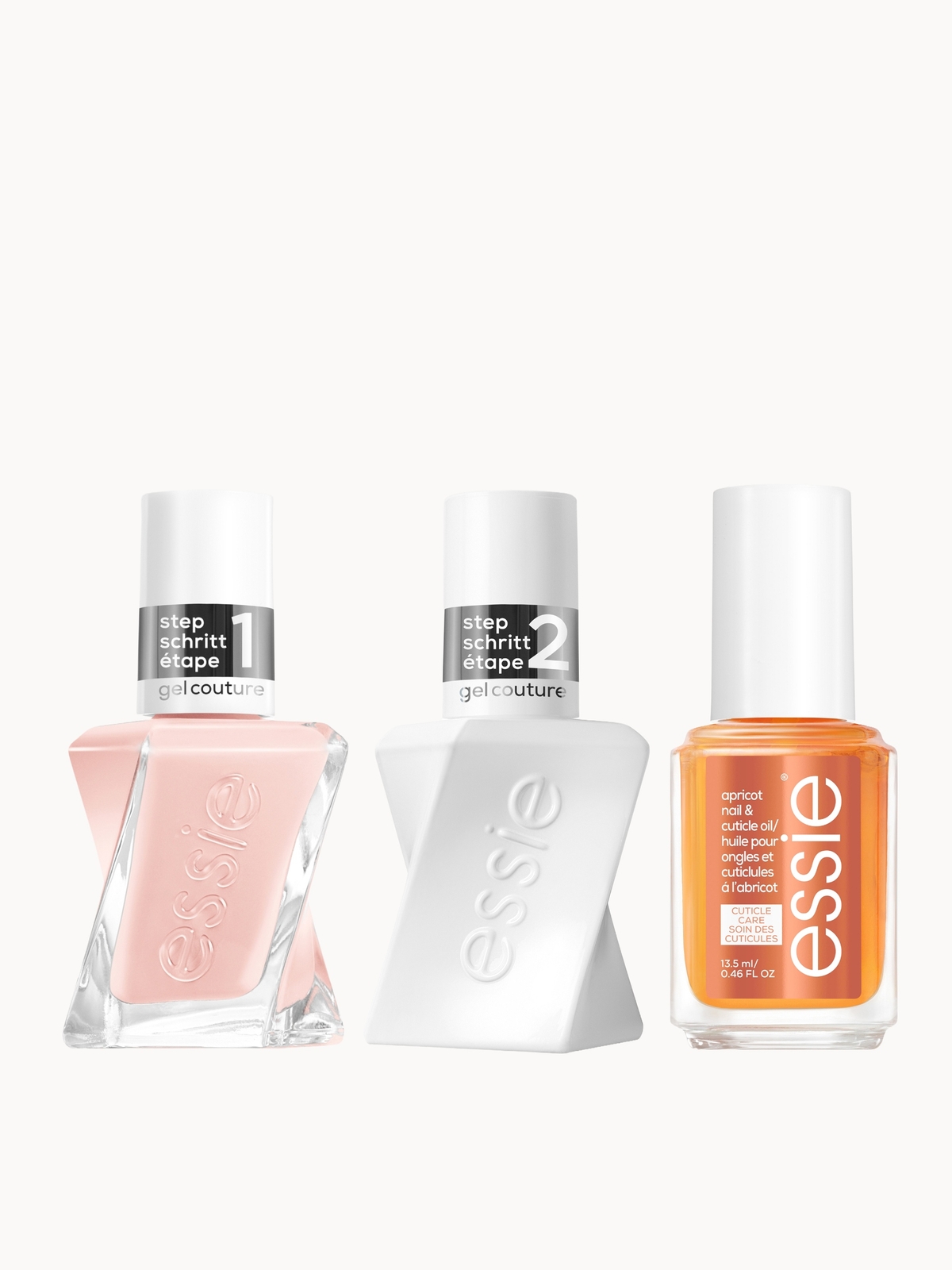 essie Gel Couture Nude Nail Polish Top Coat and Apricot Cuticle Oil Care Bundle