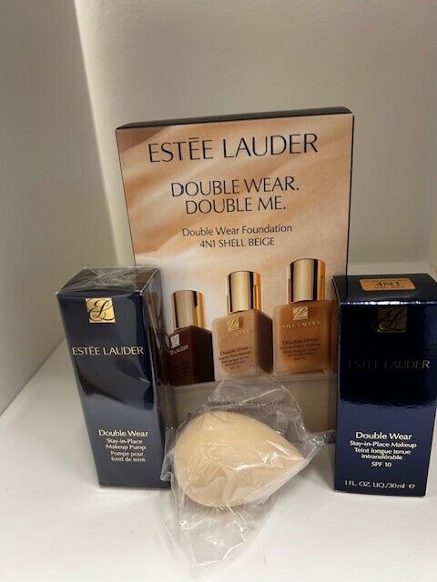 Estee Lauder Double Wear Foundation Set 4N1 Shell Beige, pump and makeup sponge