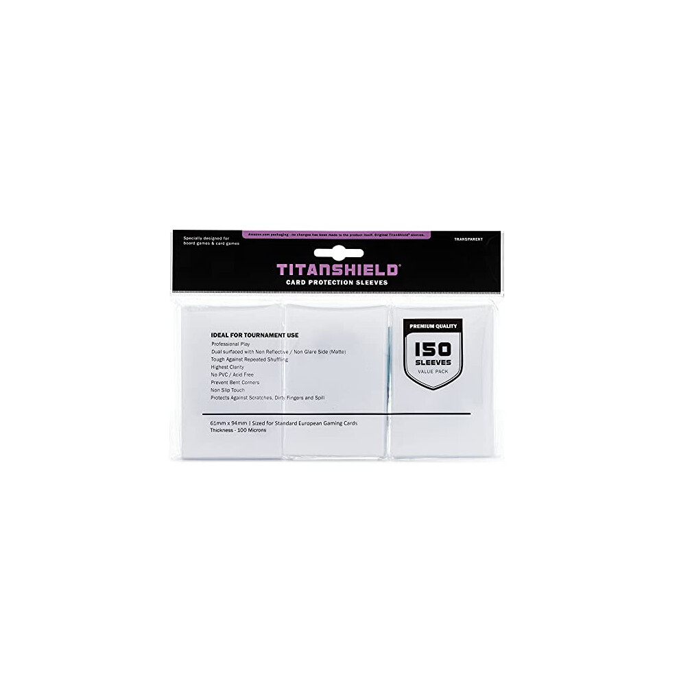 TitanShield (150 Sleeves) Clear Standard European Size Board Game and Matte Card Sleeves