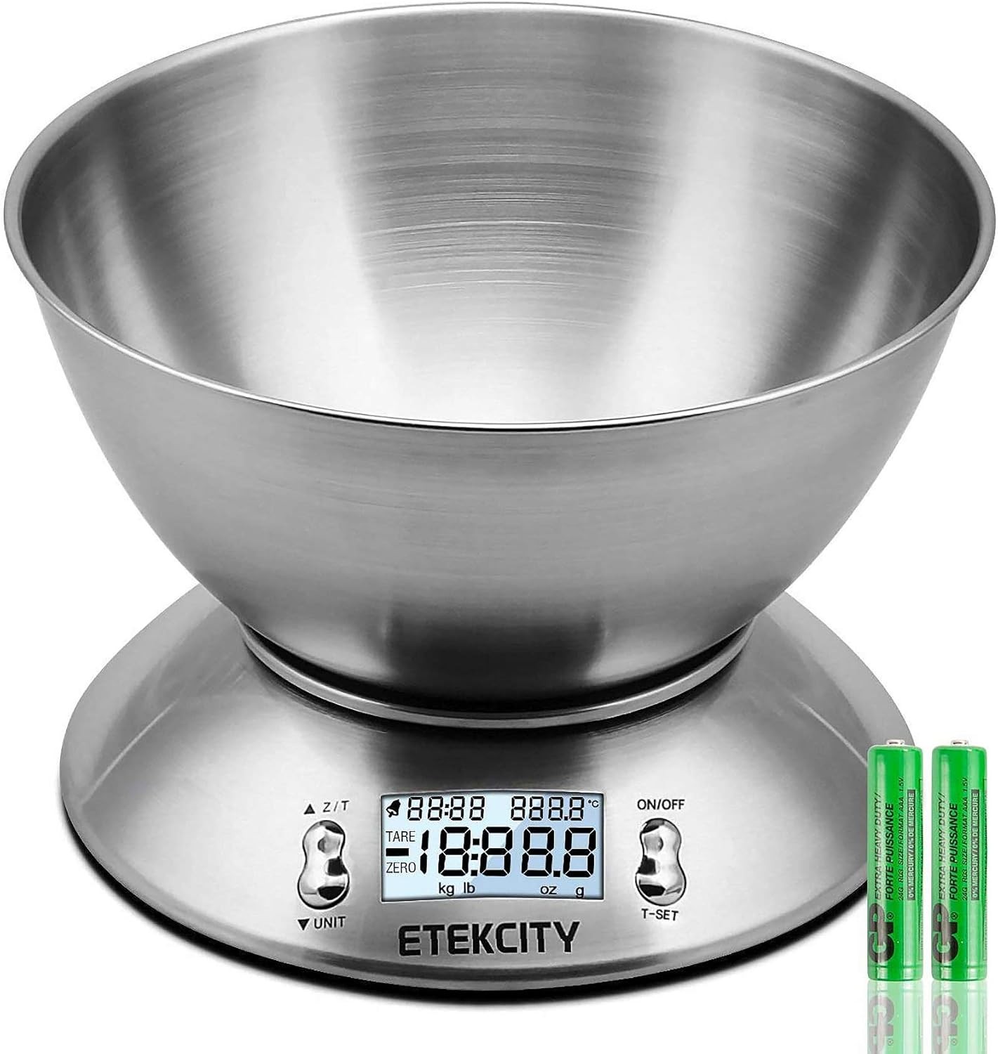 Etekcity Electronic Kitchen Scales with Stainless Steel Mixing Bowl, Timer and Temperature Sensor, Digital Wet and Dry Food Weighing Scale for Cooking and Baking-11lb/5kg