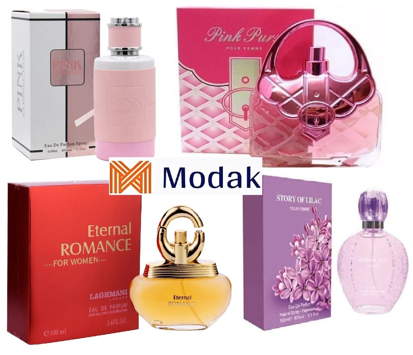 Modak 4 Pack women Perfume Pink Purse,Pink Connection,Eternal Romance EDP 100ml