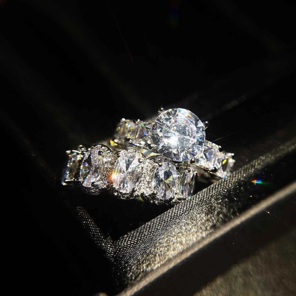 11mm Big Zircon Silver Bride Wedding Ring Set for Women Bride Engagement Jewelry Band Eternity Gift R4843