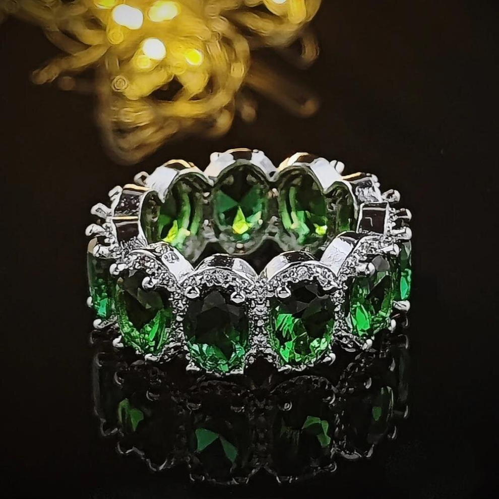 Set Pack Pink Green Silver Wedding Band Eternity Ring for Women Gift Finger Lots Jewelry R4574