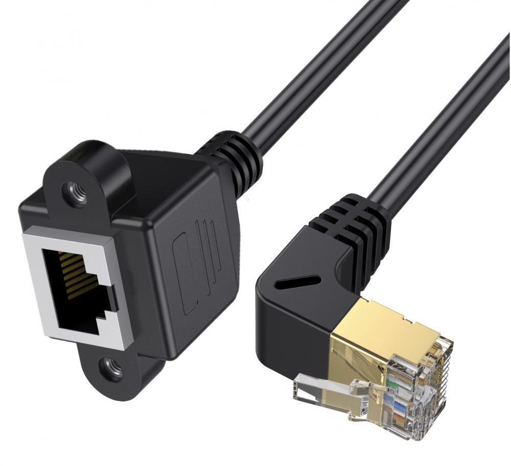 Cat8 RJ45 Ethernet 40Gbps Extension Cable - Male to Female, Up Angle - 0.3m