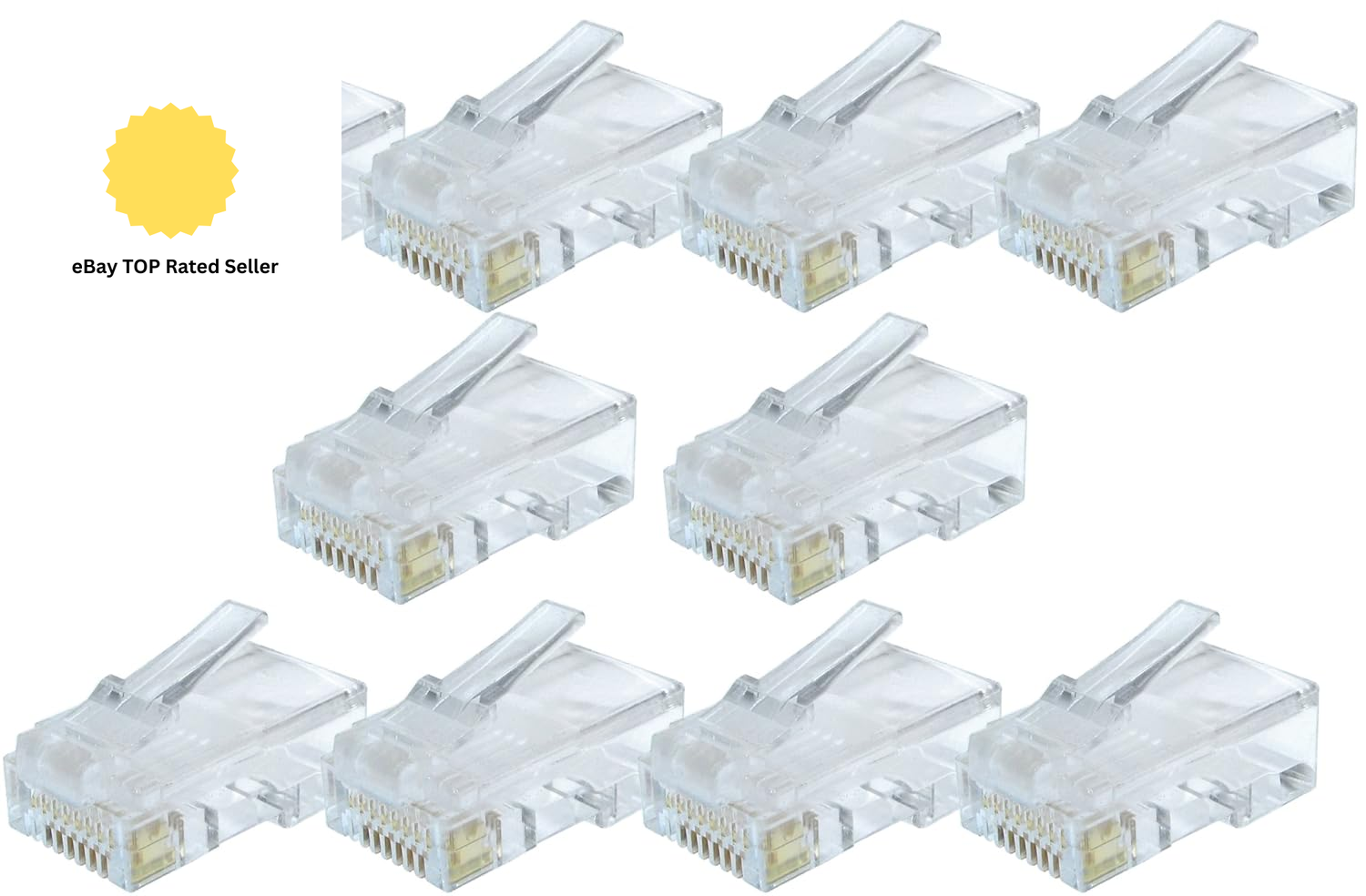 rhinocables - RJ45 Ethernet Crimp Plugs | Cat5e Network End Connectors | Universal Compatibility - Easy Installation | Secure Connection | Wall Plate Compatible, Gold, 10 Pack