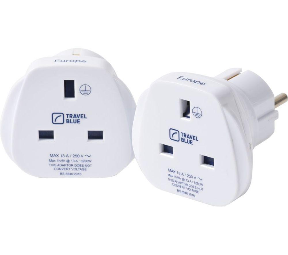 TRAVELBLUE TB-174 UK to EU Travel Plug Adapter - Pack of 2, White