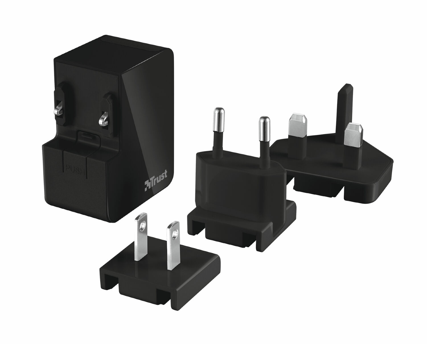 TRUST UNIVERSAL TRAVEL CHARGER WITH TWO USB OUTLETS, WALL PLUGS FOR EU, UK & US
