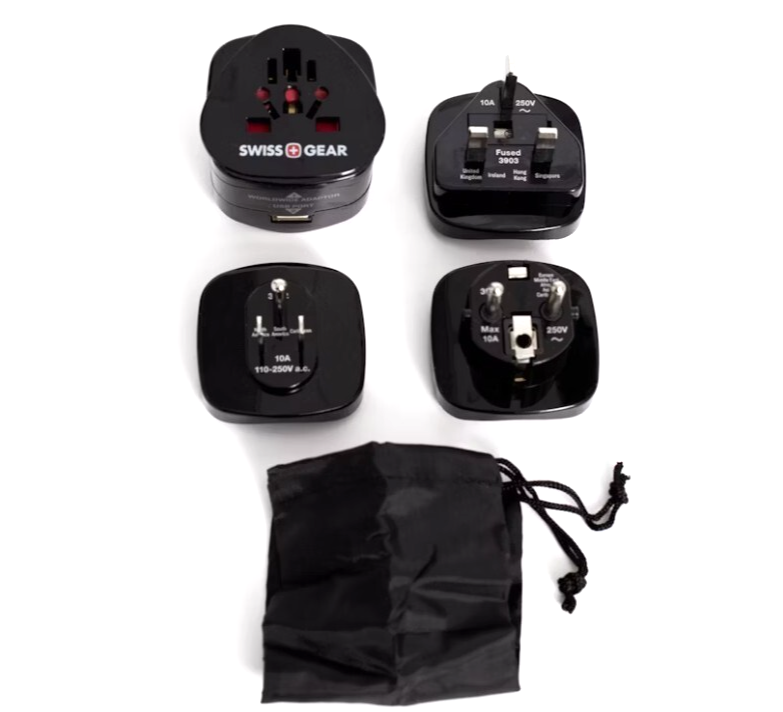 SWISSGEAR Worldwide Adaptor Plug Set USB Port - Black - EU,US,UK,AU plugs