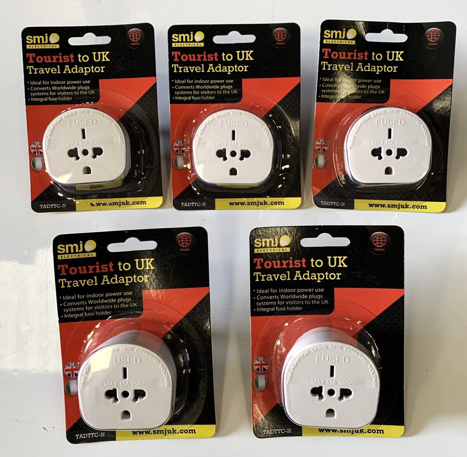 5x SMJ European EU US 2-Pin to UK 3-Pin Mains Travel Adaptor Power Plugs Tourist