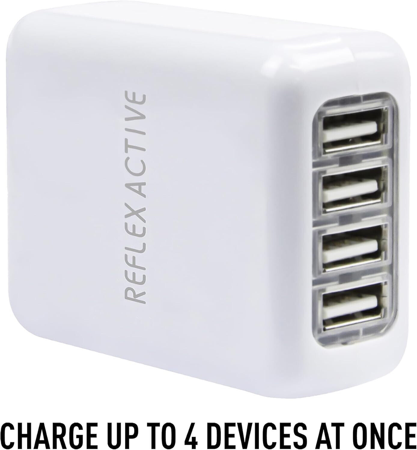Reflex Active 4 Port USB Mains Plug with UK, U.S, Asia and EU Plugs