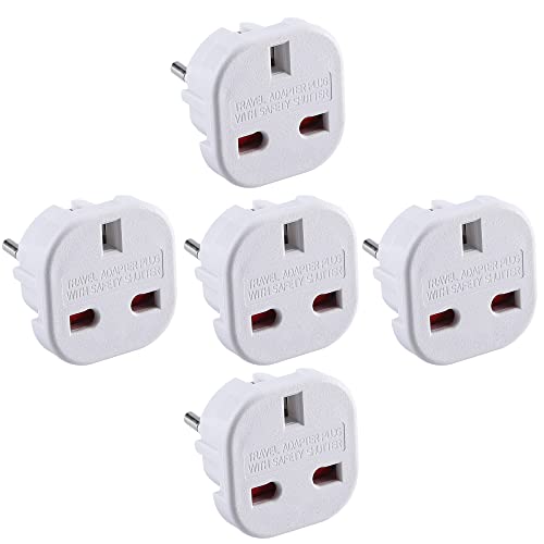 DAPTER 5 Pack White UK to European Plug Adapter | Travel Adapter UK to Europe | Euro Plug Adapter (Type G to C, E, F) | Travel Plugs UK to EU Countries (SPAIN, ITALY, GREECE, TURKEY, POLAND & More)