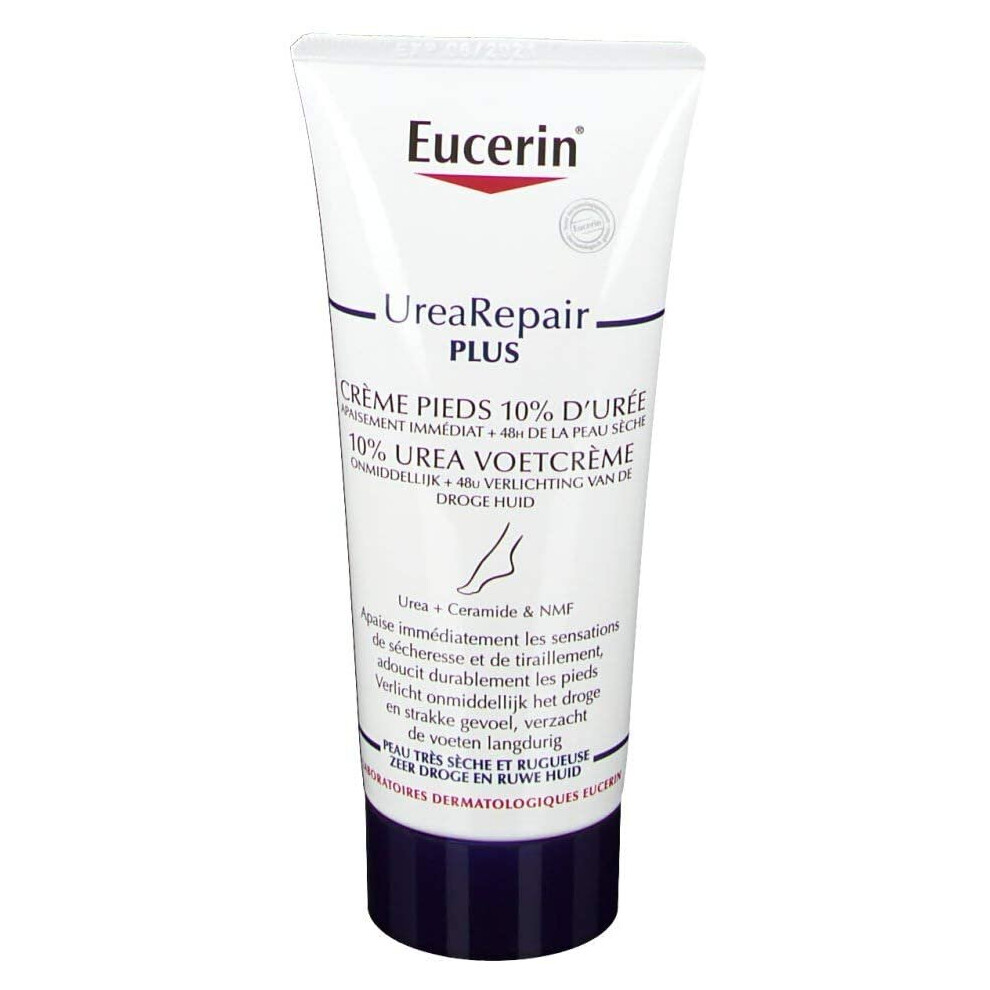Eucerin UreaRepair Plus 10% Urea Foot Cream 100ml, Intensive Moisturising Foot Treatment for Dry, Cracked Feet and Heels, with Ceramide & Natural Moisturising Factors, Fast-Absorbing Moisturiser