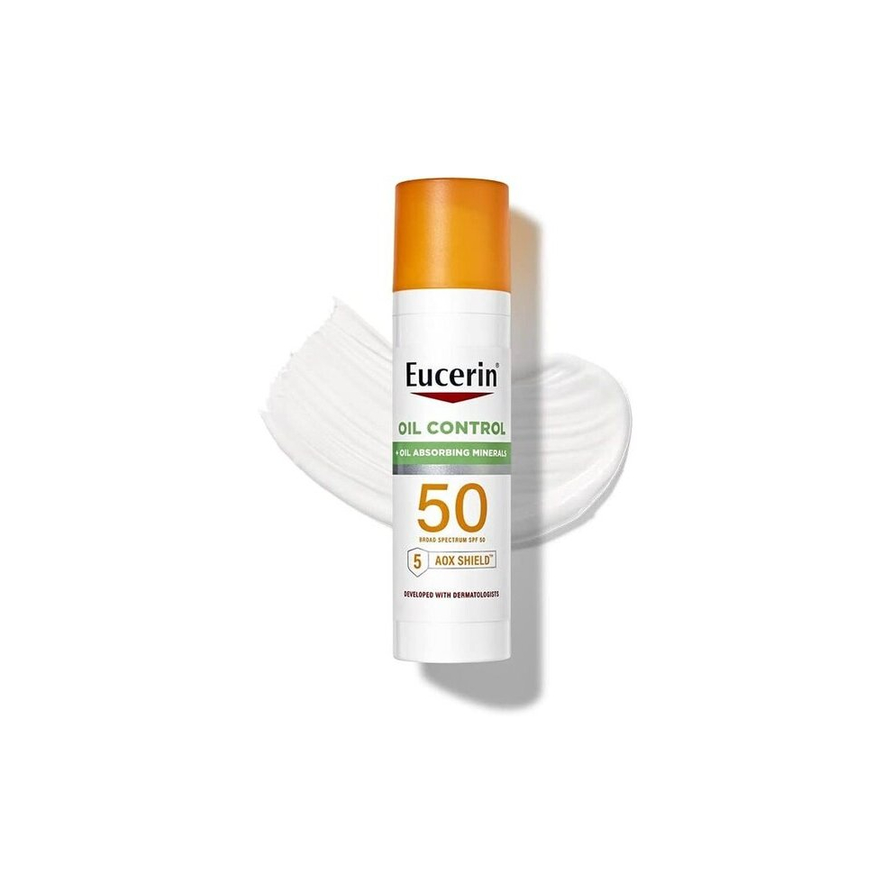 Eucerin Sun Oil Control SPF 50 Face Sunscreen Lotion With Oil Absorbing Minerals For Moisture and Glow, 2.5 Fl Oz Bottle, White, 2.5 Fl Oz (Pack Of 1)